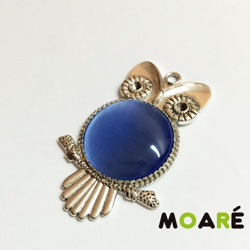 Colgante camafeo búho color Plata , con cabujón de ojo de gato. Medida cabujón 25x25mm. El Kit incluye picado