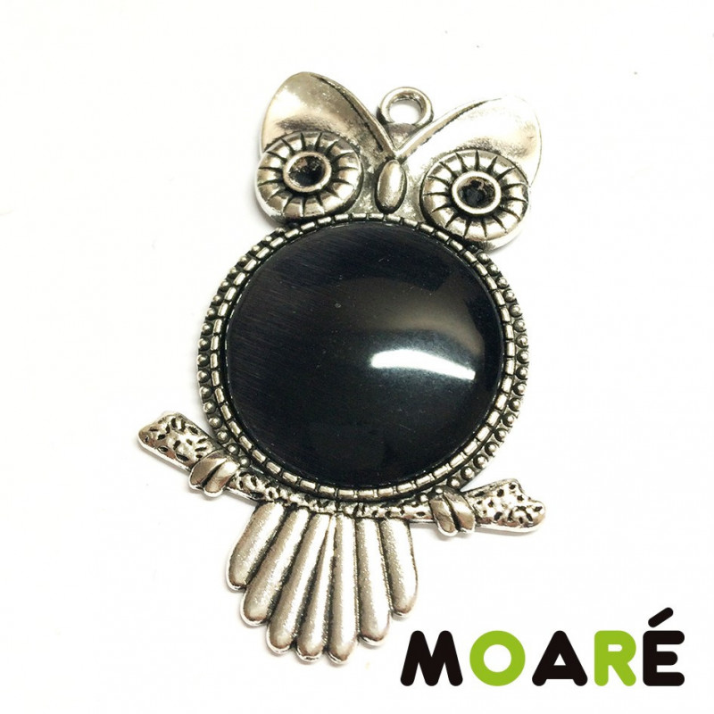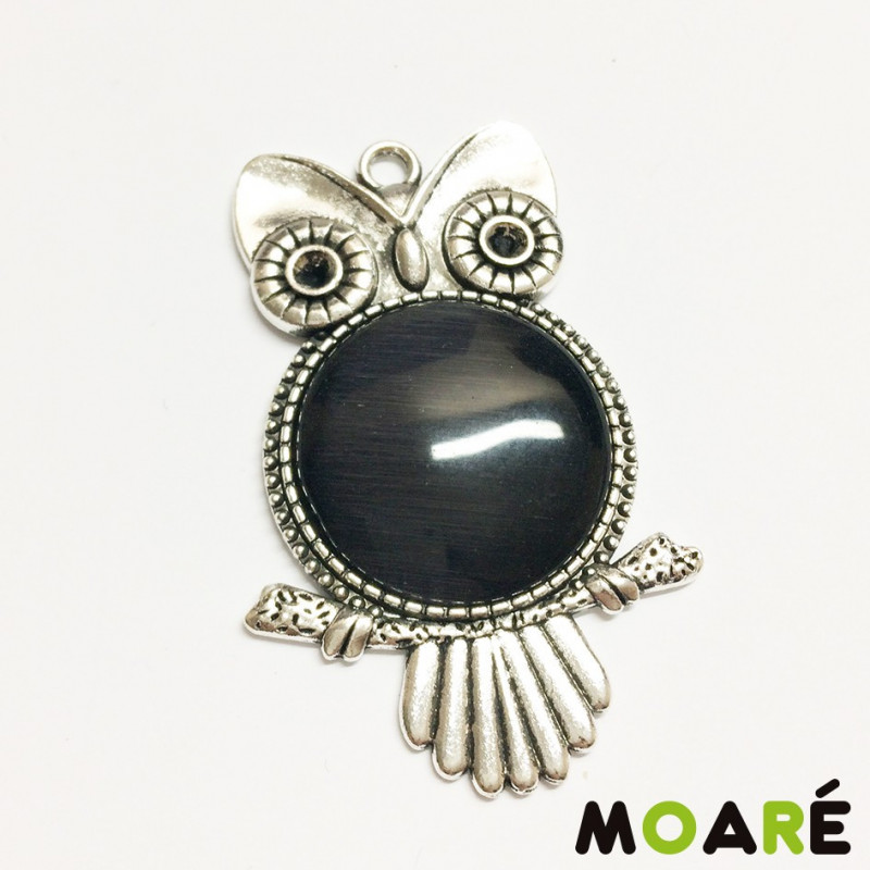Colgante camafeo búho color Plata , con cabujón de ojo de gato. Medida cabujón 25x25mm. El Kit incluye picado