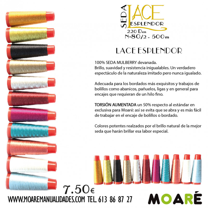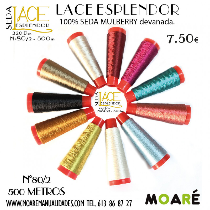 Adecuada para los bordados más exquisitos y trabajos de bolillos como abanicos, pañuelos, ligas y en general para encajes que requieran de un hilo fino.