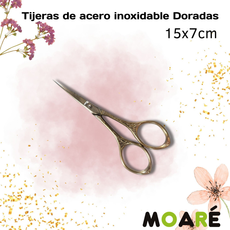 Tijeras de acero inoxidable, tijeras de bordar, tijeras de coser, dorado, 15x7CM