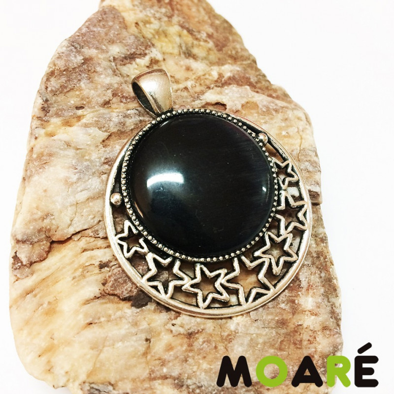 Colgante estrella con cabujón en piedra natural ojo de gato negro 25x25mm incluye picado encaje de bolillos