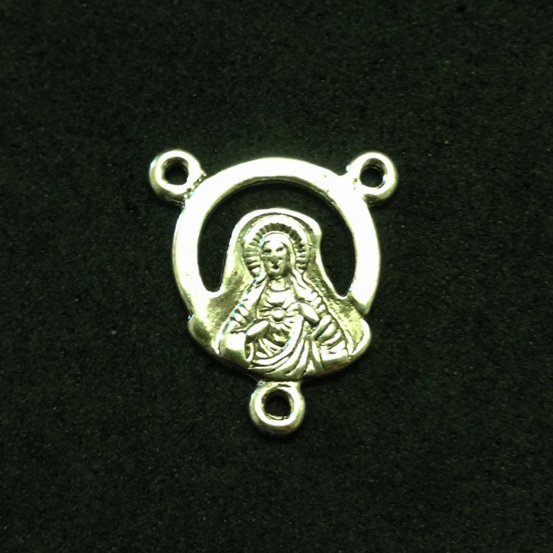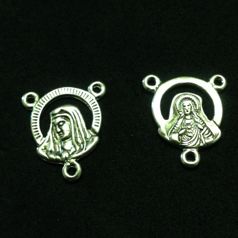 Medalla para rosarios imagen Virgen tiene dos caras redonda 18x16mm